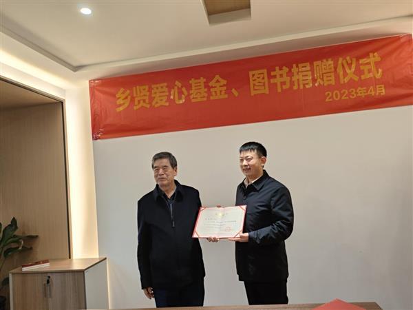 鄉(xiāng)賢項(xiàng)美根捐贈(zèng)人民幣10萬元以及自傳《回眸八十春》