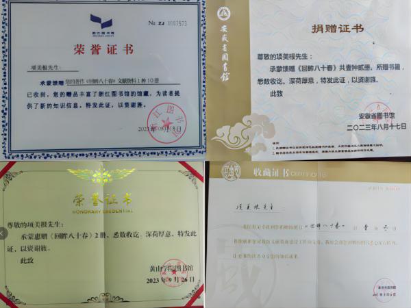 2022年年底,公司終身名譽(yù)董事長項(xiàng)美根個(gè)人著作《回眸八十春》出版了,《回眸八十春》記述了項(xiàng)美根一輩子堅(jiān)持做好一件事,創(chuàng)新、創(chuàng)造、創(chuàng)業(yè)的一生。他一生坎坷波折,很有時(shí)代特點(diǎn),五十歲下海創(chuàng)業(yè)的經(jīng)歷更是筆難能可貴的財(cái)富,給人啟發(fā)。他在自己所創(chuàng)辦的企業(yè)里把閥門的”科研”與“制造”直接融為一體,在科研中搞生產(chǎn)制造,在生產(chǎn)制造中搞科研,這種嶄新的科學(xué)社會(huì)實(shí)踐理念,值得全社會(huì)借鑒。他身上有著新時(shí)代弘揚(yáng)和踐行的“工匠精神”,值得大眾學(xué)習(xí)和贊揚(yáng)。項(xiàng)工出書后的*件事就是將作品回饋家鄉(xiāng)和社會(huì),項(xiàng)工先后以個(gè)人名義向安徽省圖書館、浙江省圖書館、黃山市圖書館、天津圖書館、金華市圖書館、屯溪區(qū)圖書館、浦江縣圖書館、浙江大學(xué)圖書館、浙江工業(yè)大學(xué)圖書館、黃山學(xué)院圖書館、浙江浦江中學(xué)圖書館等捐贈(zèng)書籍。各地圖書館接收?qǐng)D書饋贈(zèng)后均表示悉心收藏,供讀者閱覽,并向項(xiàng)美根董事長頒發(fā)捐書證書。