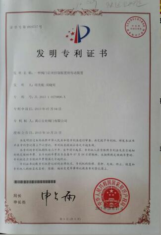黃山良業(yè)閥門(mén)有限公司借貫徹國(guó)標(biāo)《企業(yè)知識(shí)產(chǎn)權(quán)規(guī)范管理》的東風(fēng),堅(jiān)持實(shí)施科技創(chuàng)新戰(zhàn)略,以提高企業(yè)創(chuàng)新能力為己任,拓展高新技術(shù)企業(yè)發(fā)展空間。繼擁有的“一種閥門(mén)電動(dòng)裝置”發(fā)明專利之后,又成功研發(fā)一種閥門(mén)手動(dòng)裝置,并獲得發(fā)明專利,發(fā)明名稱:一種閥門(mén)啟閉控制裝置的傳動(dòng)裝置,專利號(hào):ZL201310279890.X,授權(quán)公告日:2015年10月21日。標(biāo)志著公司在知識(shí)產(chǎn)權(quán)上又取得進(jìn)步。